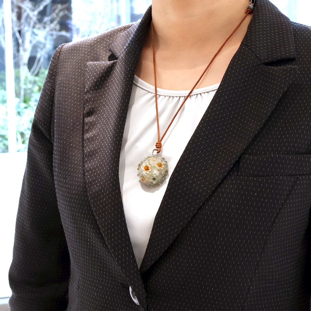 ボロシリケイトガラス、革紐