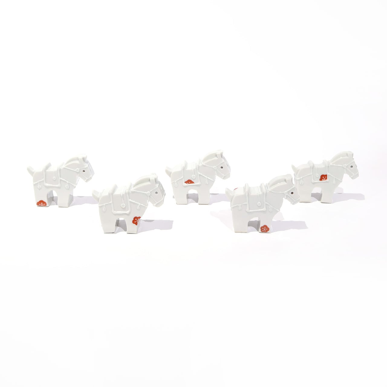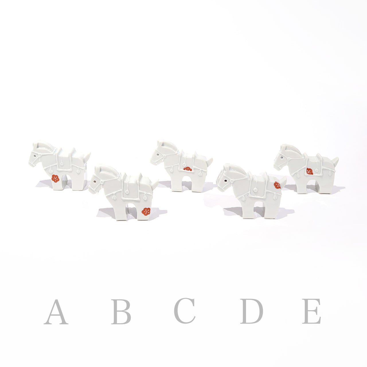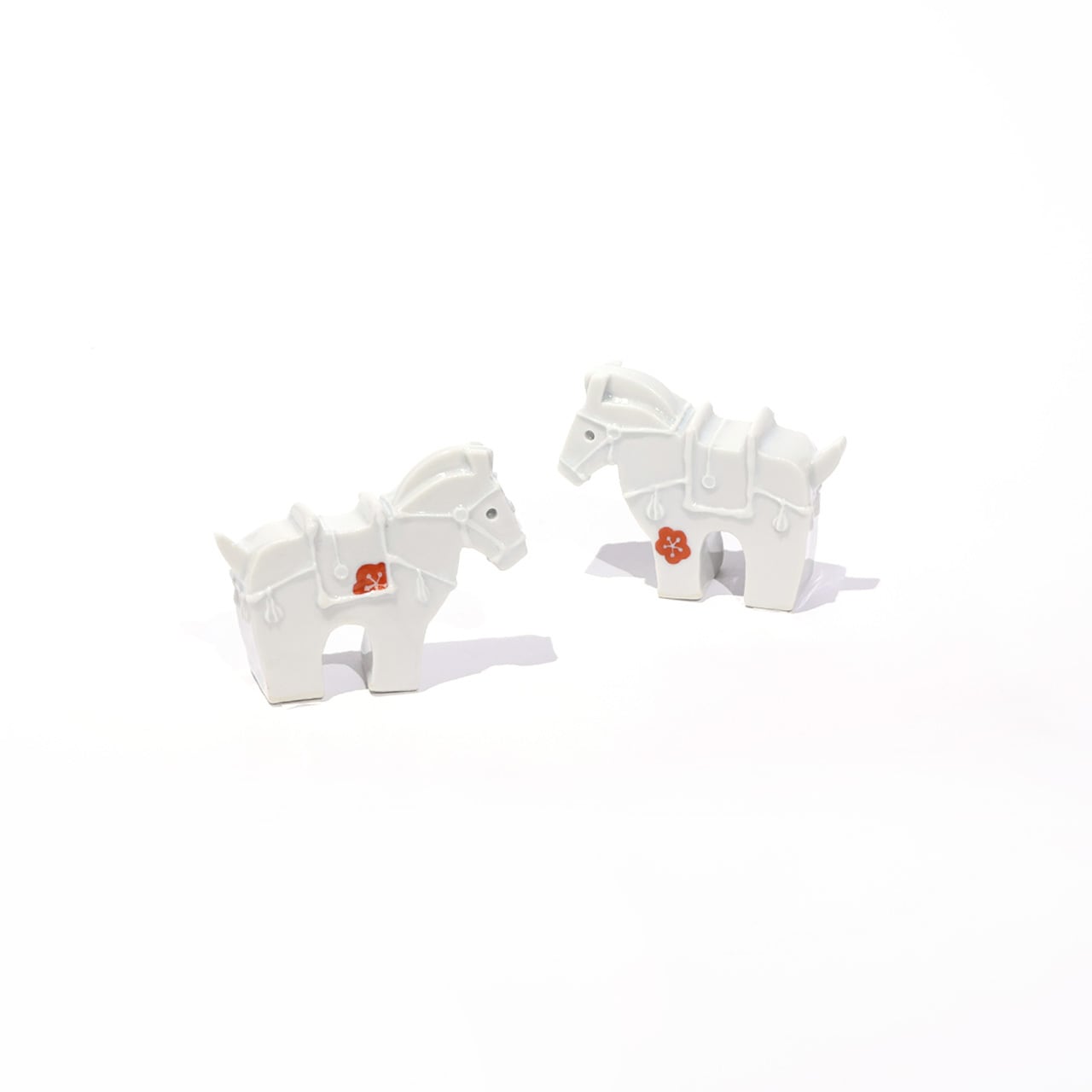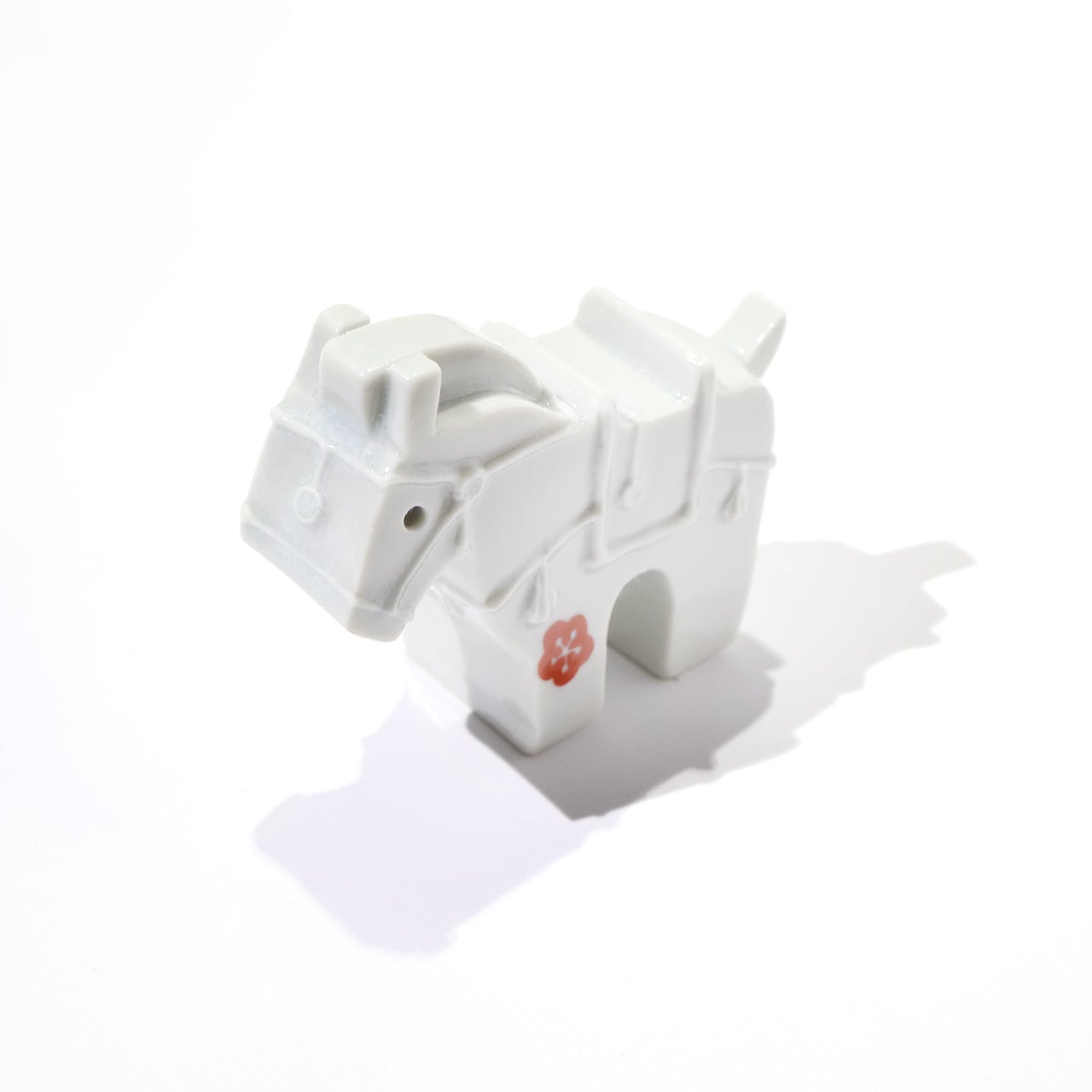 こちらはシンプルな白地に赤い梅がさりげないアクセントになった可愛らしい午の干支置物です。