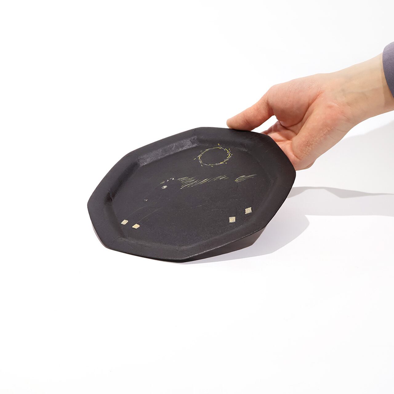 螺鈿や蒔絵を使った幾何学的な文様表現とそれに合わせた乾漆箱の制作をメインに、茶道具や日常で使う器や小物の制作もされている木下幸さん。