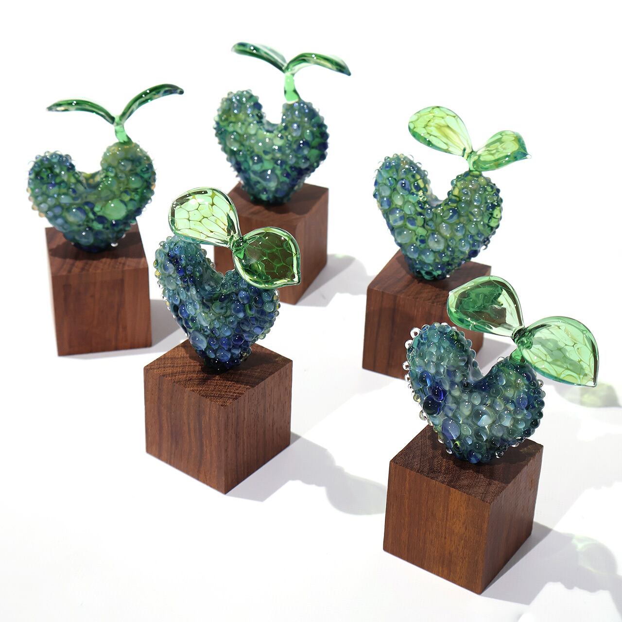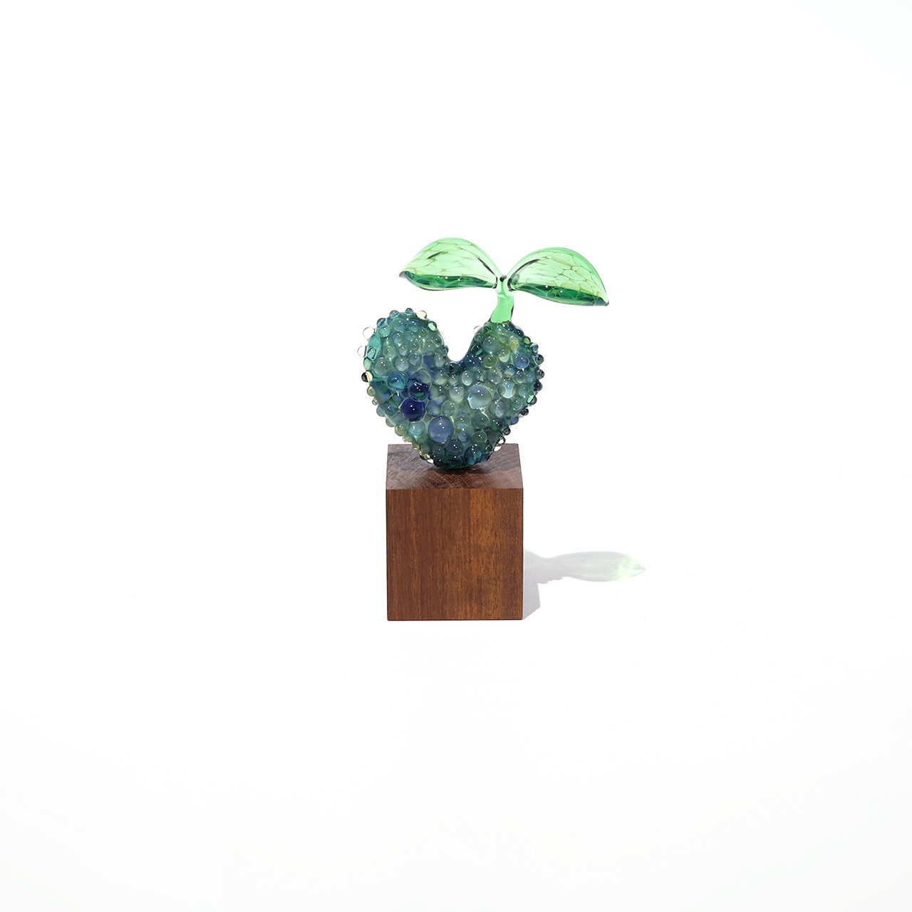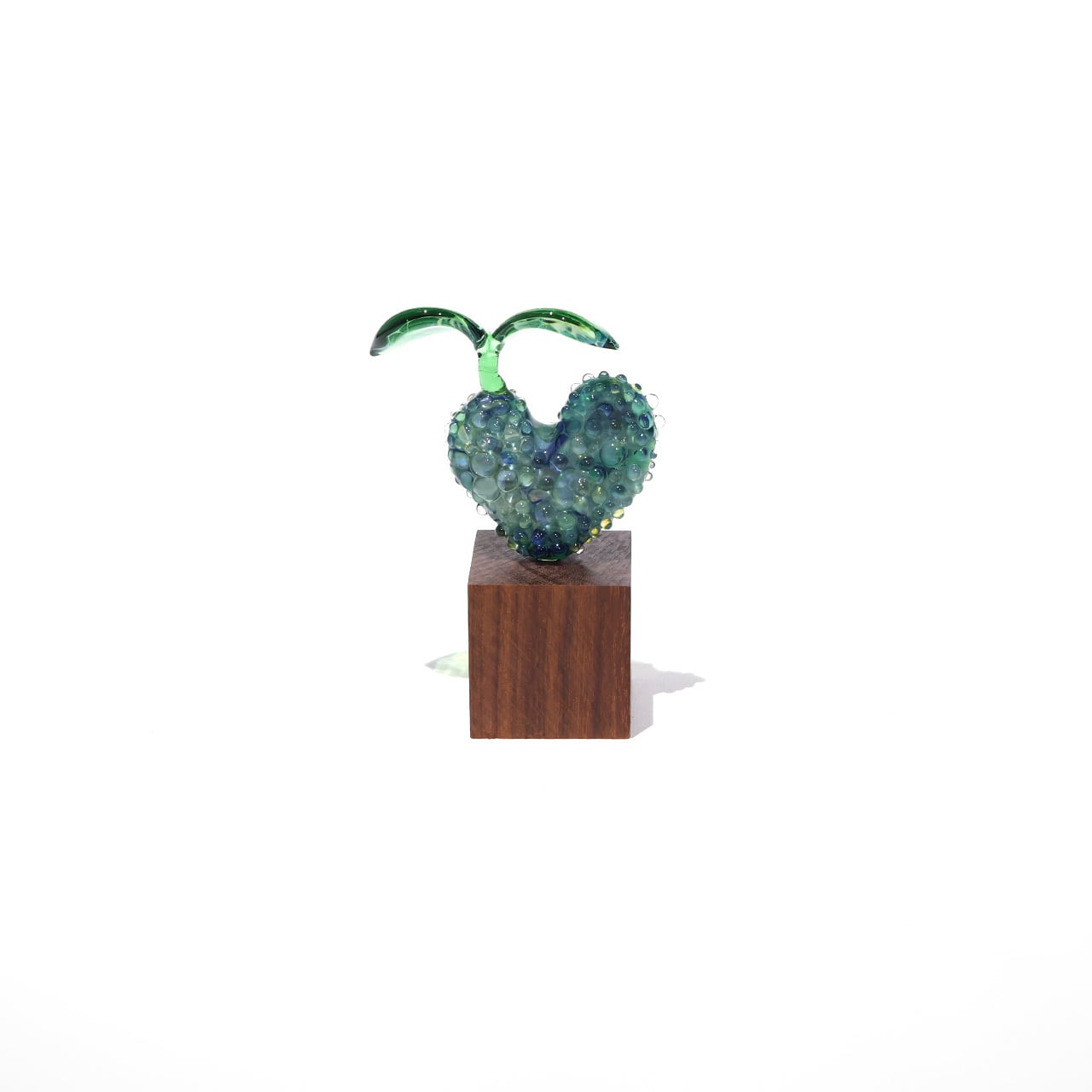 ハート型のシダの前葉体から芽を出した愛らしい双葉。生き物を愛おしむ作家さんの繊細な技術が光ります。