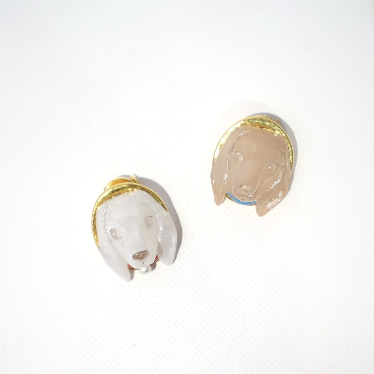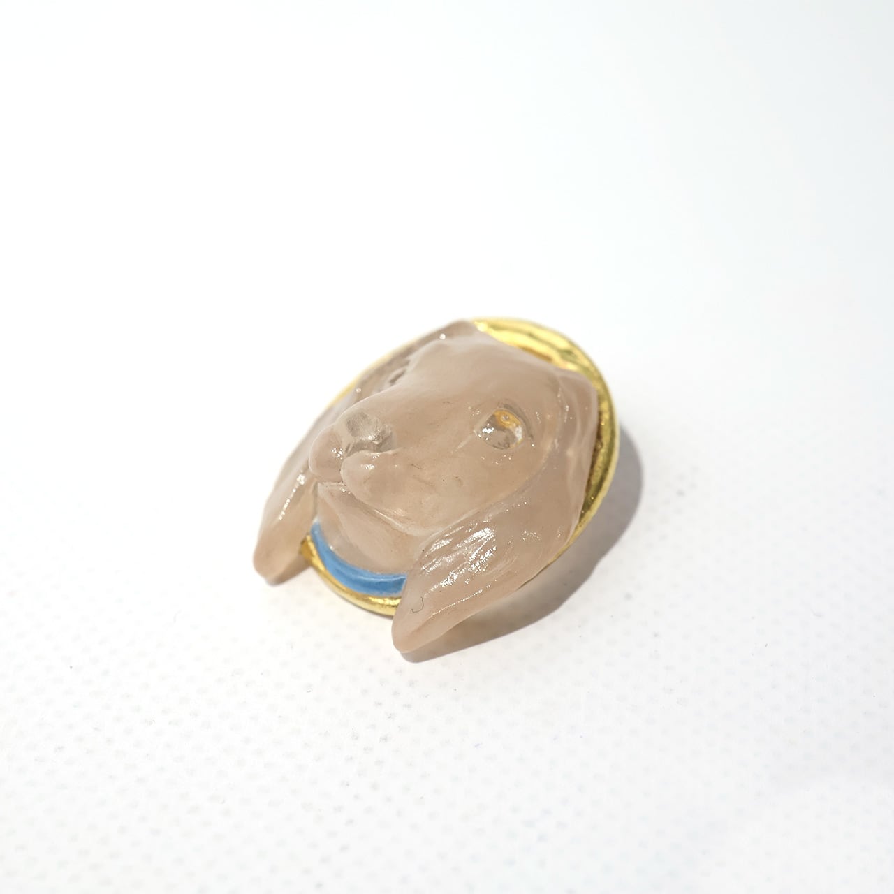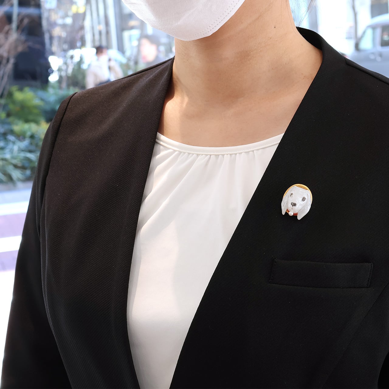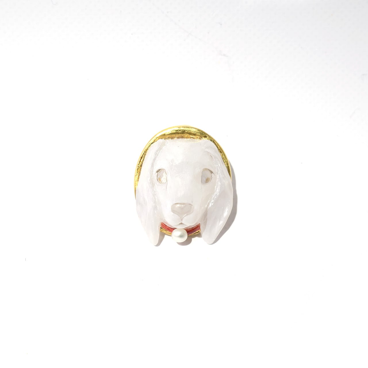 趣のある肖像画のような優しいまなざしの半立体のいぬのブローチです。