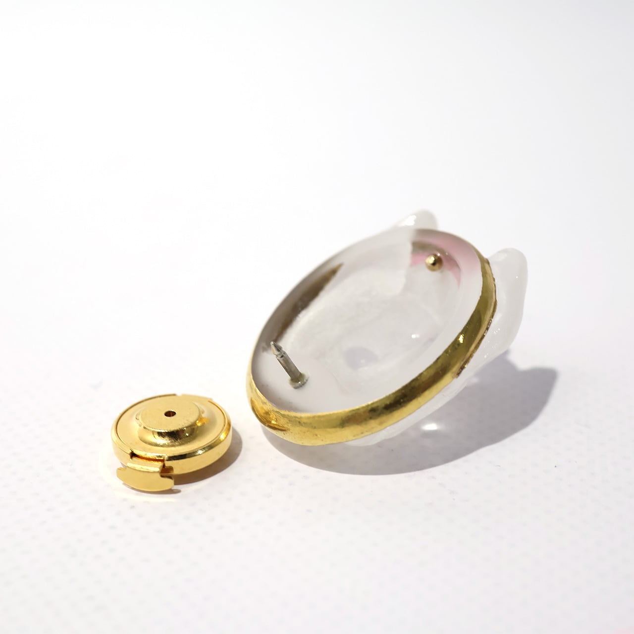 ※こちらの作品はピンがやや長めのため、薄地の物には付属のフェルトを布地とピンのキャッチの間に挟んでいただきますとブローチが安定します。