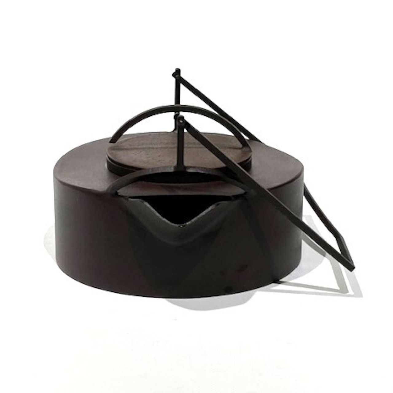 従来の鉄瓶のイメージをくつがえすほどにモダンでシャープなフォルムの鉄瓶です。卓上にもちだしてお抹茶を一服差し上げてみるのはどうでしょうか。