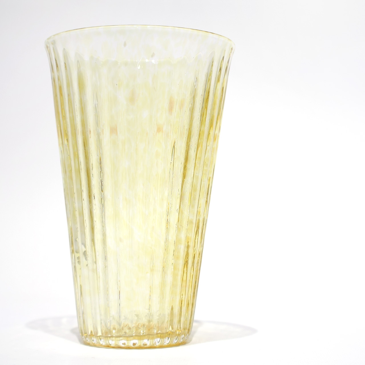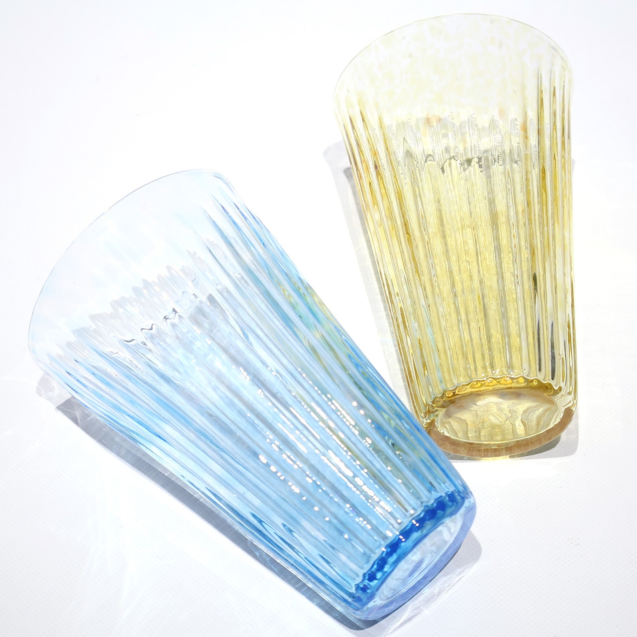 色ガラスの濃淡が水面のゆらぎのような不思議な模様を作り出しています。クールだけどほんわかやわらかさも感じるグラスです。サイズ違いの「モールグラス(小)」もございます。