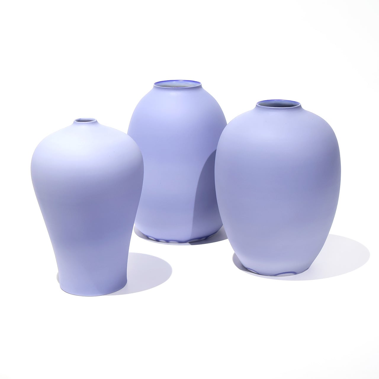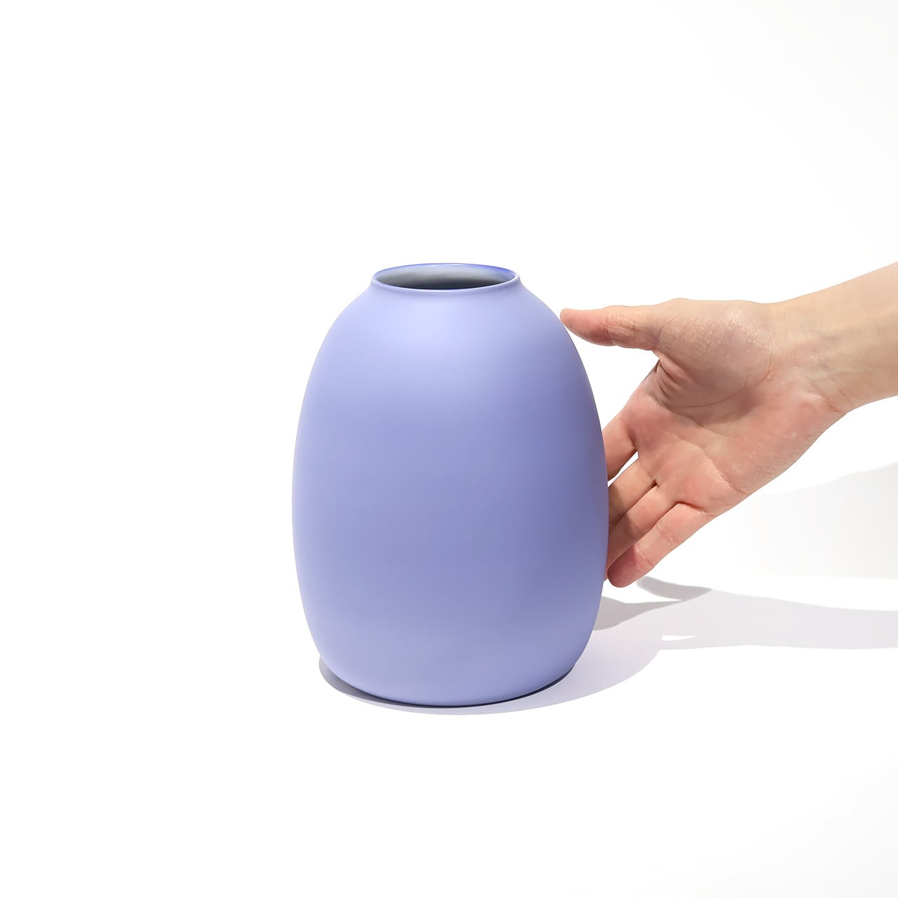 青く発色するコバルトを染み込ませて焼き上げ、釉薬とは違ったふんわりとした質感です。優しいブルーが目を惹きます。