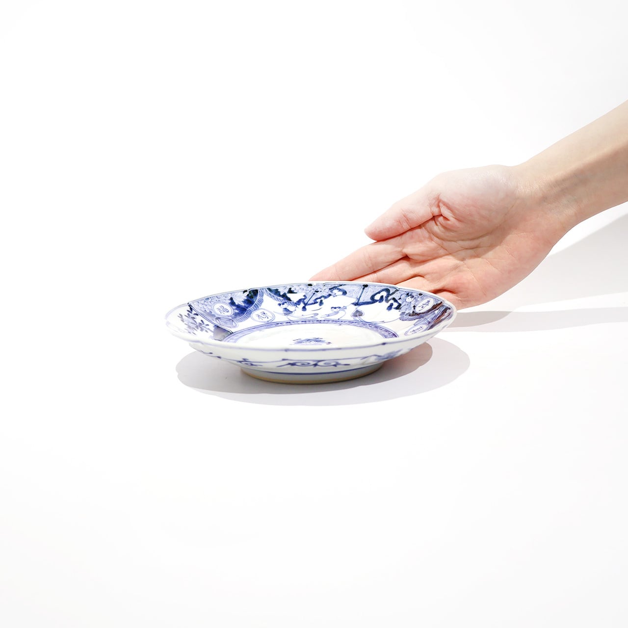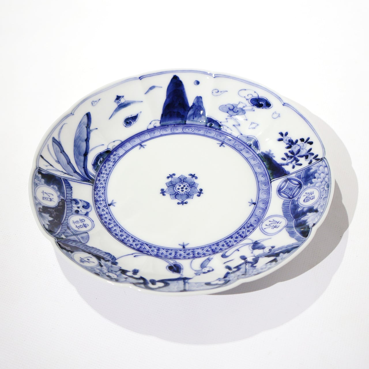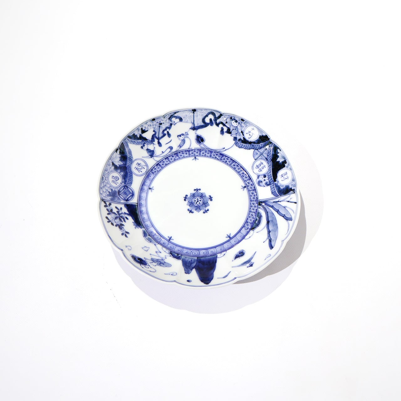 アヤベシオリ 輪花皿「白象唐子文」