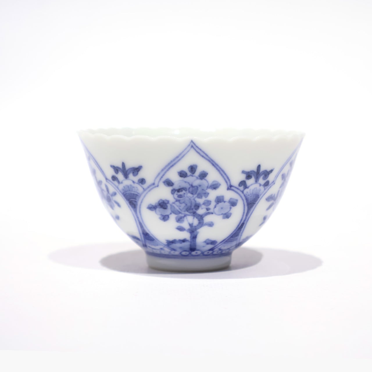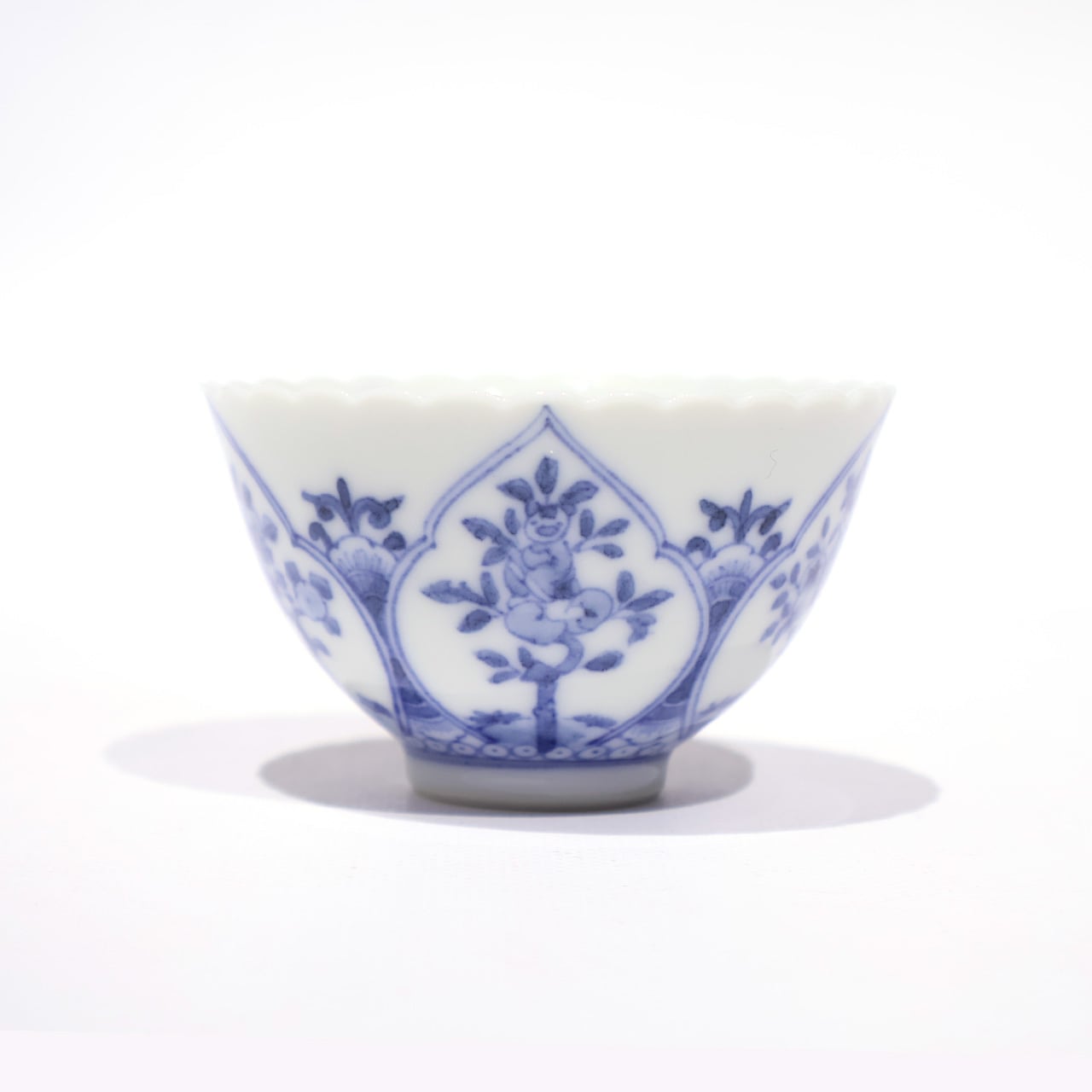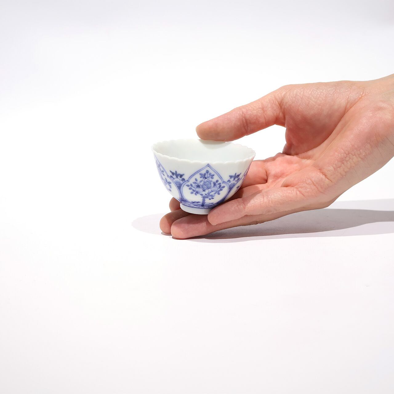 口づくりの輪花形が唐子のかわいさを一層引き立てるような愛らしい印象の盃です。手のひらにすっぽりと収まるサイズ感です。