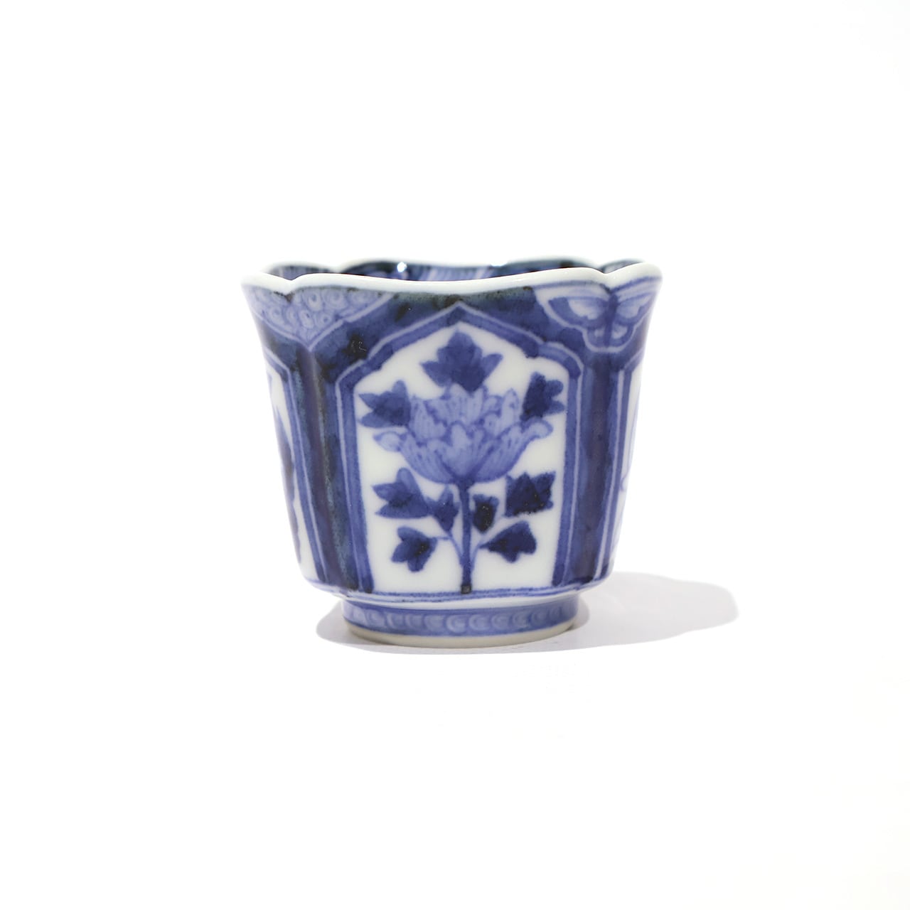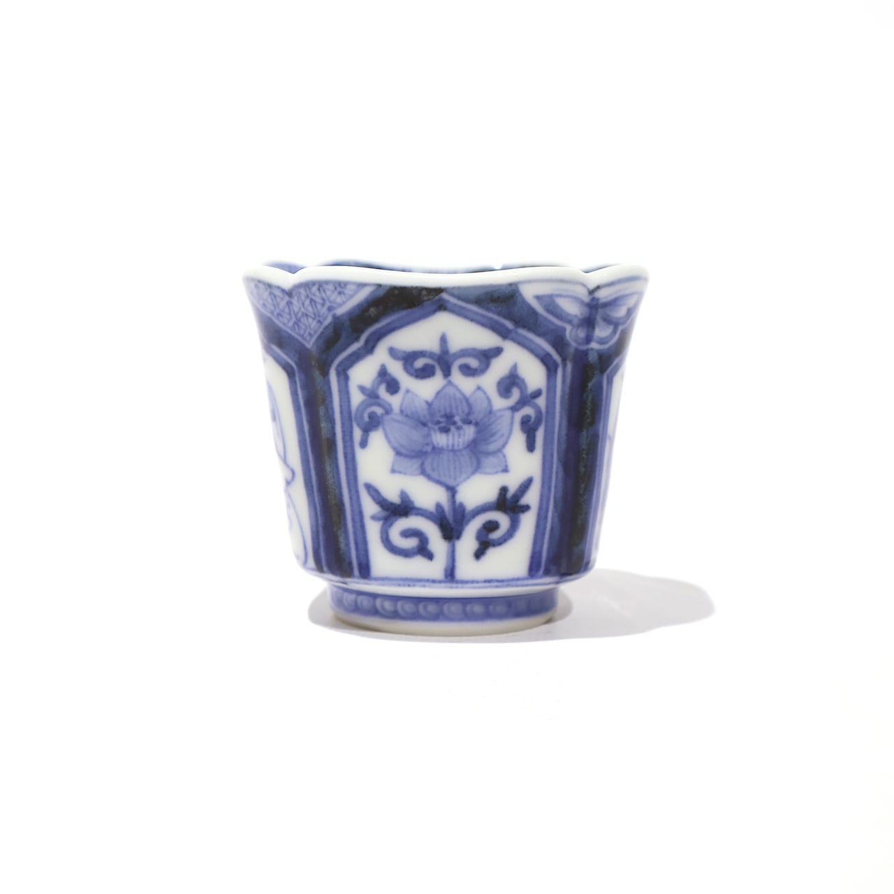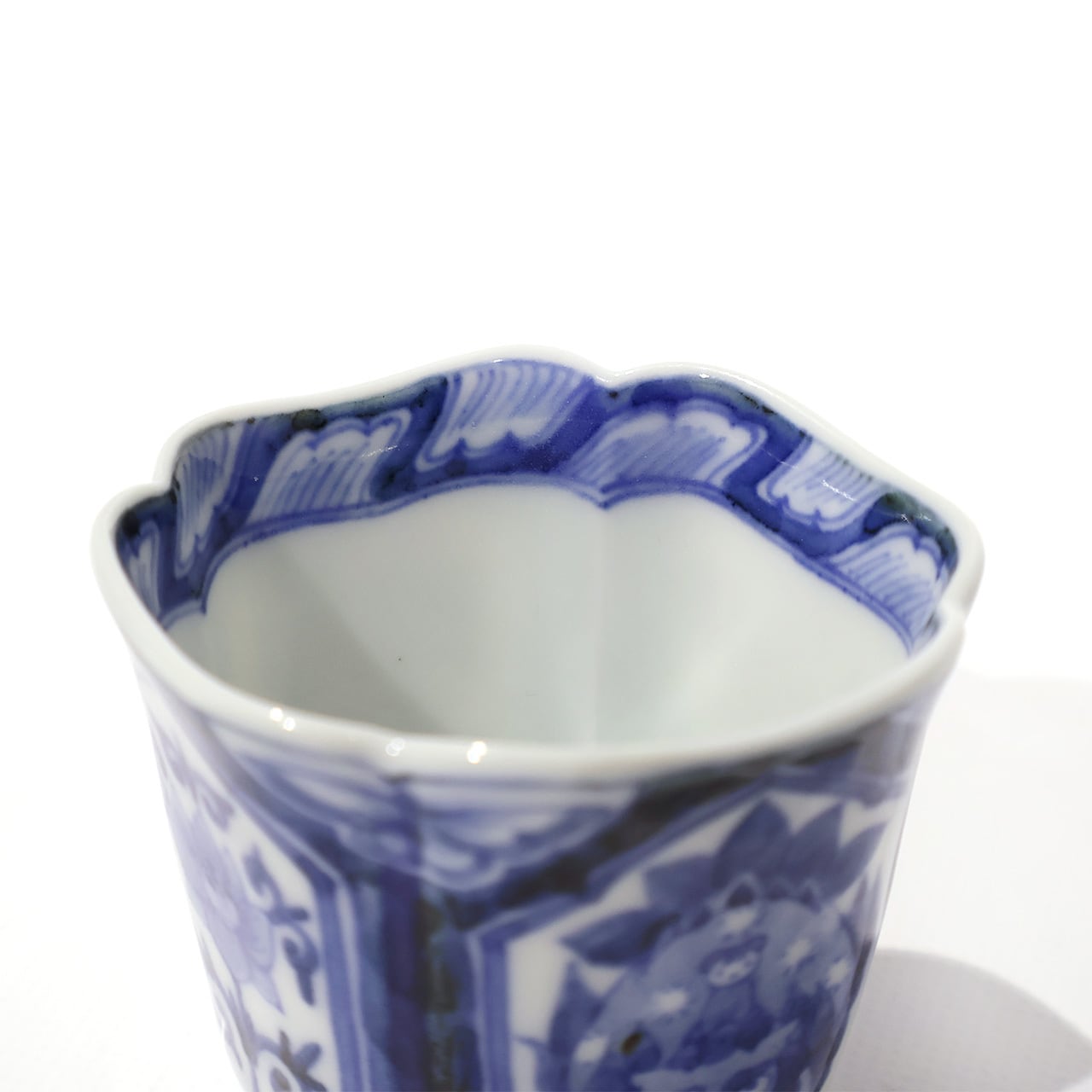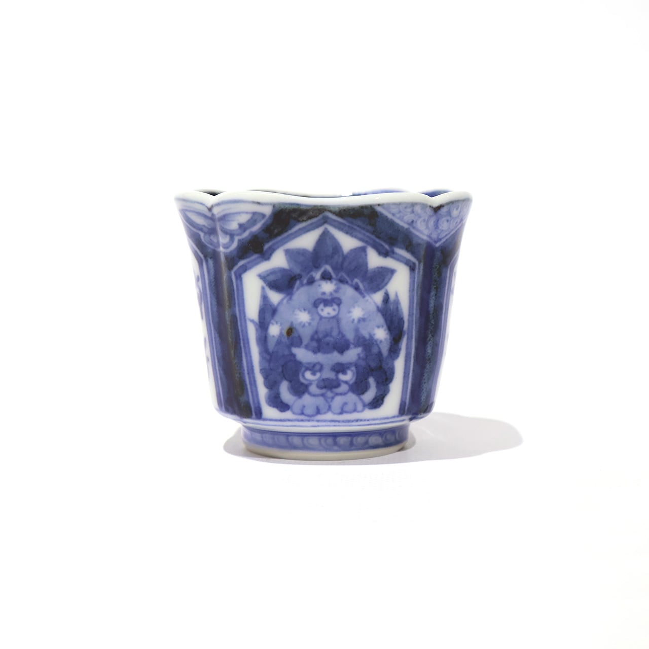 アヤベシオリ 四方盃「芙蓉手 白象青獅子文」